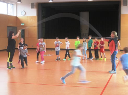 In einem zweistündigen Kurs konnten die Schülerinnen und Schüler der Klasse 3b Grundzüge des „Robe Skipping“ erlernen. Diese Form des Seilspringens eignet sich zur Schulung und Verbesserung motorischer Grundfähigkeiten wie Ausdauer und Koordination.
