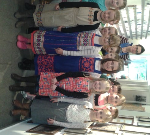 Die Mädchen der Klasse 3b der Grundschule Spraitbach durften beim Besuch des Schulmuseums in Schwäbisch Gmünd die Schürzen anziehen, die Mädchen in der Zeit nach dem 2. Weltkrieg üblicherweise in der Schule trugen um ihre Kleidung zu schonen.