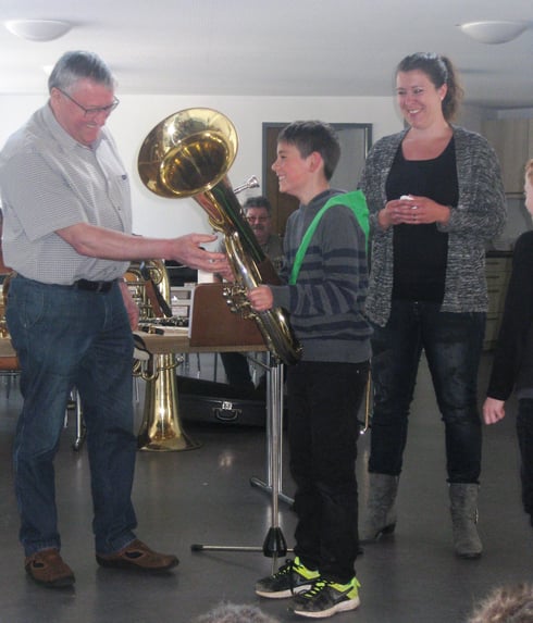 Am Montag, den 3.4.2017 stellten Corinna Harsch und drei Vollblutmusiker des Musikverein Spraitbachs verschiedene Musikinstrumente, die man in ihrem Verein erlernen kann, den Dritt- und Viertklässlern der Grundschule vor. Nachdem zu jedem Instrument spezielle Blasübungen mit allen Schülern ausprobiert wurden, durften immer drei Kinder anschließend an den Originalinstrumenten üben. Die Schüler erfuhren viel Wissenswertes, über das kleinste Blasinstrument, der Piccoloflöte, bis zum größten Blasinstrument, der Tuba. Zum Schluss gab es noch eine Einlage auf dem Schlagzeug. Frau Harsch bedankte sich für die Aufmerksamkeit und das große Interesse bei den Schülern und lud diese zu einem kleinen Probetraining für den 13.5.2017 beim Musikverein ein.