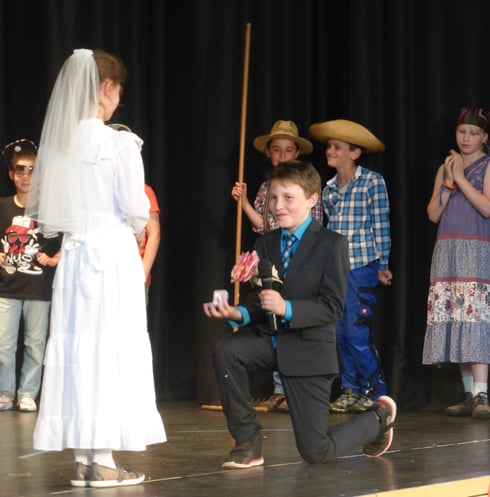Der Sketch vom „Wachhundkauf“, den die Klasse 3b im Anschluss vorführte, ließ die verzauberten Zuschauer schnell wieder auflachen.
