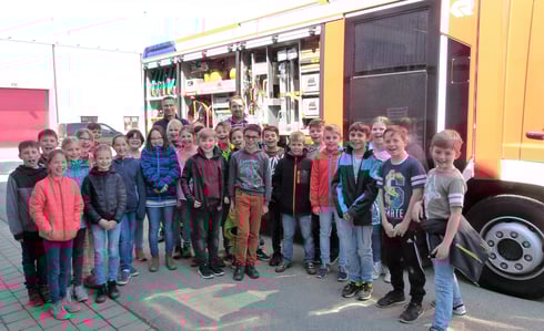 Kompetent und mit viel Engagement erläuterten Herr Endle und Herr Grünberger die Aufgaben der Feuerwehr. Stolz zeigten und erklärten sie die Funktionen ihres besten Feuerwehrautos. Die Schüler nahmen dies mit Begeisterung auf und gingen mit vielerlei neuen Informationen nach Hause.