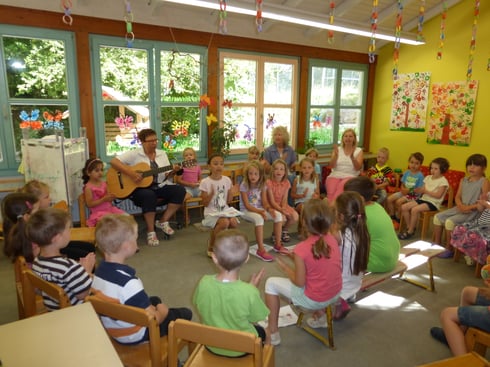 Ende Juni besuchten die Erstklässler der Grundschule Spraitbach ihre ehemaligen Gruppen im Kindergarten Wirbelwind.