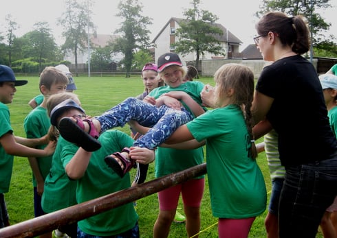 Am Freitag, den 02.06.2107 fand in der Grundschule Spraitbach ein Erlebnispädagogik-Tag mit epia statt. Die einzelnen Klassen durften an 6 Stationen viele soziale Erfahrungen zum gemeinsamen Miteinander sammeln. Um diese verschiedenen Aufgaben zu bewältigen, musste immer zusammen ein Plan erstellt werden. Wichtig war dabei auch, dass einer aus der Gruppe die Führung übernahm. So sollten sich die Kinder an einer Station nach der Größe, dem Alter und dem Nachnamen sortieren. Bei einer Fluss-Überquerung mit Hilfe von Platten, die immer berührt werden mussten, war eine besondere Taktik notwendig. Eine Plane umzudrehen, auf der die gesamte Klasse stand, verlangte beste Zusammenarbeit. Nun folgten Stationen, bei denen ein Mal ein Seil durch einen geschlossenen Kreis gegeben werden musste und das andere Mal die ganze Klasse ein langes Seil zusammen überwinden musste. Zum Schluss überquerten die Schüler eine Slackline mit Hilfe eines gemeinsam gespannten Führungsseils.
