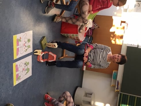 Nach einer gelungenen Darstellung trauten sich die Kinder nun selber voller Eifer fantasiereiche Geschichten rund um verschiedene anregende Bilder und Gegenstände zu erfinden, die sie zuvor aus
