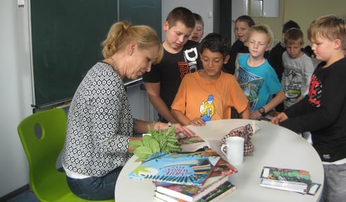 Zum Schluss konnten die Kinder noch Fragen stellen und jedes Kind bekam eine persönliche, von der Autorin unterschriebene Autogrammkarte.